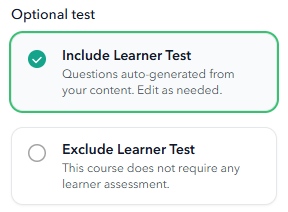 The test is optional and can be turned off by selecting “Exclude Learner Test” in the right-hand panel.